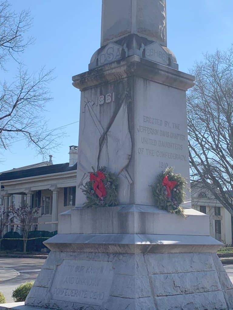 Those protests allowed me to see the best and the worst of people in our town. I saw people fighting (metaphorically) for the Imago Dei in others and I saw people fighting (yes they tried to provoke fights) to dishonor the Imago Dei in others. So while this is a good Christmas for my family, I was deeply saddened to see that the United Daughters of the Confederacy has decorated our local racist monument with Christmas wreaths. To connect the birth of their White Jesus with a movement that sought to deny, or diminish, the Imago Dei in our fellow humans is heartbreaking. To see a time of year that is about God loving us so much that he sent Jesus to condescend from his seat in Heaven and walk among us, as a brown man, conflated with the hate of our fellow man is sickening.