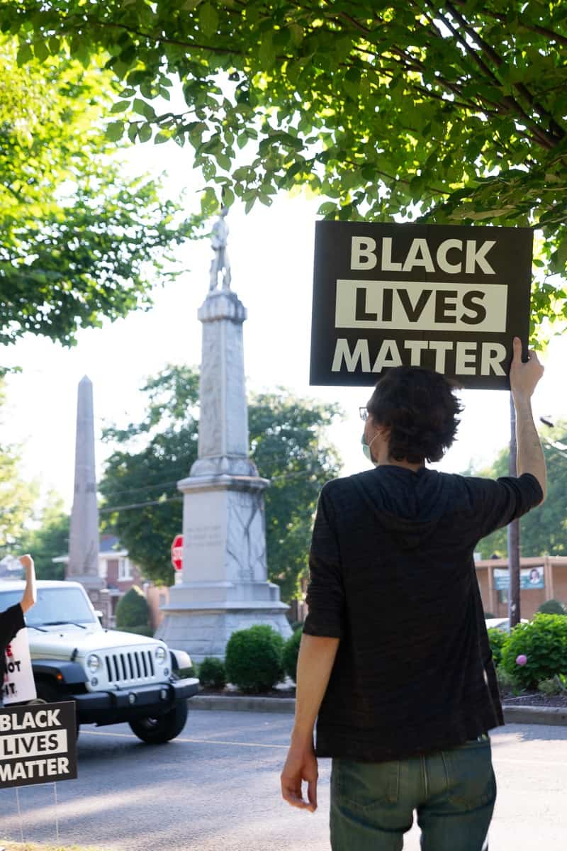 It is humbling to stand holding a sign amidst a multi-racial, multi-generational manifestation of the Beloved Community. We stand silently in support of racial justice as hate emanates from the shadow of a Jim Crow-era Confederate monument and to kneel in contemplation for 8:46 while passing cars curse us. It is heartening, though, to see the growing support of motorists raising fists or honking in solidarity, yet it is heartbreaking to apprehend our remaining distance from racial equity.