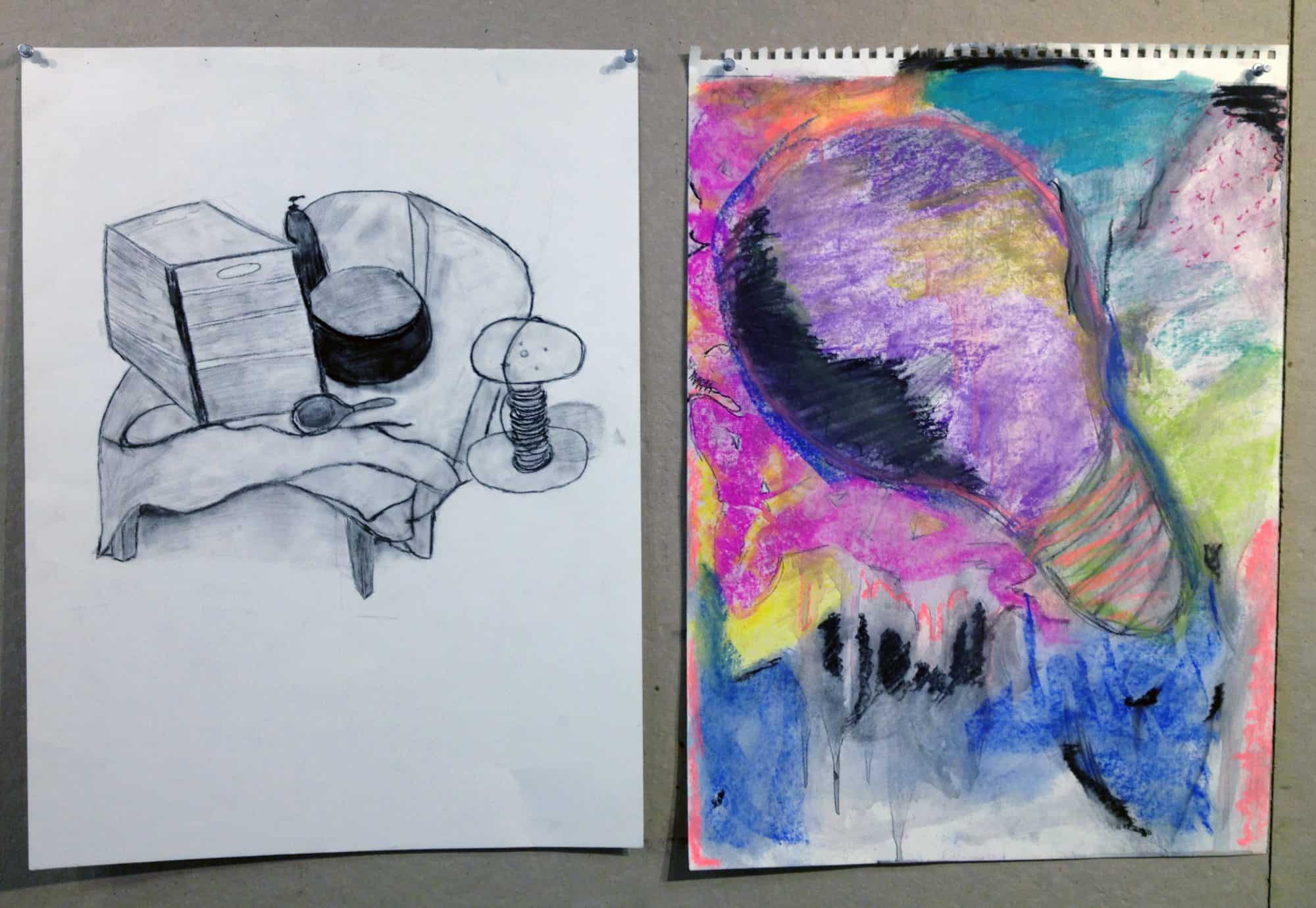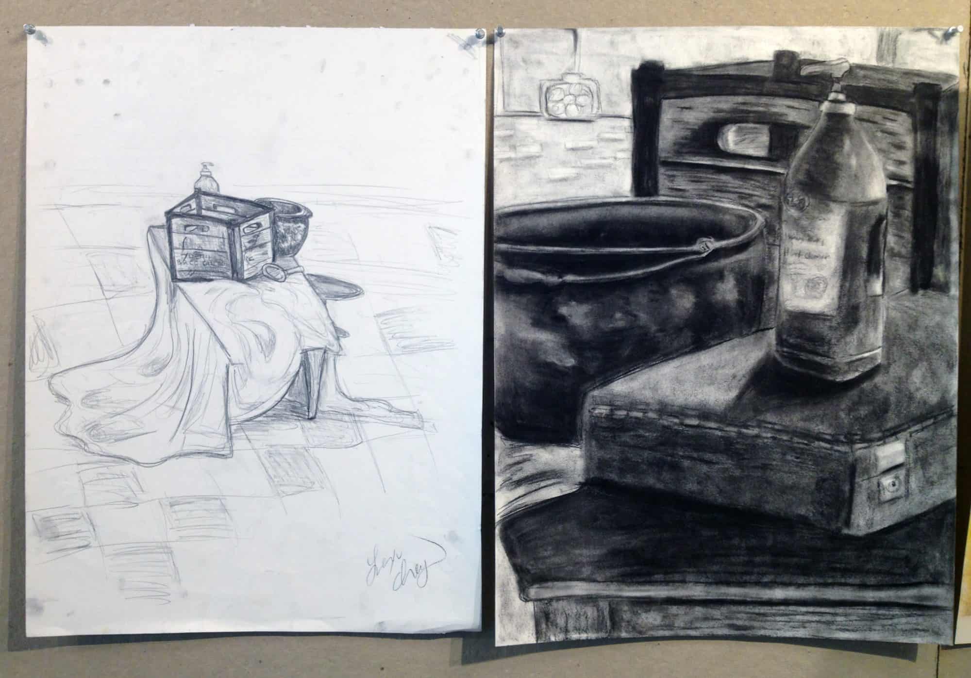 My classes aren’t just about technical drawing, they are about creativity. They are about vision. You can see how much more dynamic the second compositions are. Students often ask how realistic the work needs to be. I always tell them that the still-life is a starting point. The objective is to create a piece of art that works. Some students, such as the one above, choose to create more abstractly. I enjoy the individual creativity that each student brings to the work. But equally, I enjoy not having to assure students that they are learning something. They see it for themselves.